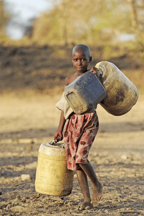 Alle drei bis vier Jahre bricht eine Dürre über Ostafrika herein. Wie ein Leichentuch legt sie sich über die afrikanische Savanne. Gras, Büsche und Bäume verdorren, Wasserstellen trocknen aus. Die Viehherden magern ab oder sterben. Die Männer treiben das Vieh ins regenreichere Gebirge, um es vor dem Verhungern und Verdursten zu retten. Zurück bleiben Frauen, Kinder und Alte. Die täglichen Wege zum Holen des lebensnotwendigen Trinkwassers werden länger und beschwerlicher, etwa 15 Kilometer lang (ein Weg). Jetzt müssen die 13- 17jährigen Mädchen den Schulbesuch aufgeben und für die Familie täglich Wasser holen. Bis zum nächsten Regen kann es 10, 12, oder 14 Monate dauern. Dann hat eine Generation der Mädchen ihre Schullaufbahn abgebrochen: Wasser-holen statt Schule.