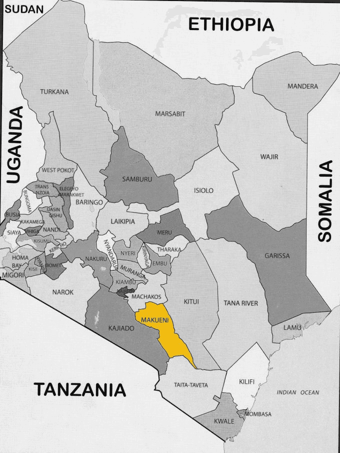 Heute sind wir in eine der Gegenden des County Makueni aufgebrochen, die zu den ärmsten Gebieten Kenias zählen. Es ist jetzt das Ende der Regenzeit. Noch sind die meisten Bäume und Sträucher grün. Aber die Baobabs, die dicken Affenbrotbäume, haben schon alle Blätter abgeworfen und kündigen damit die beginnende Trockenzeit an, in der es ca. vier Monate lang (Juni-September) keinen Tropfen Regen geben wird. Kurz hinter der Bezirkshauptstadt Wote endet die letzte Teerstraße. Nach gut zwei Stunden Fahrt mit einem hochachsigen Vierradantrieb über staubige, schlaglochübersäte Pisten erreichen wir unser heutiges Ziel, die Ititu Primary School.