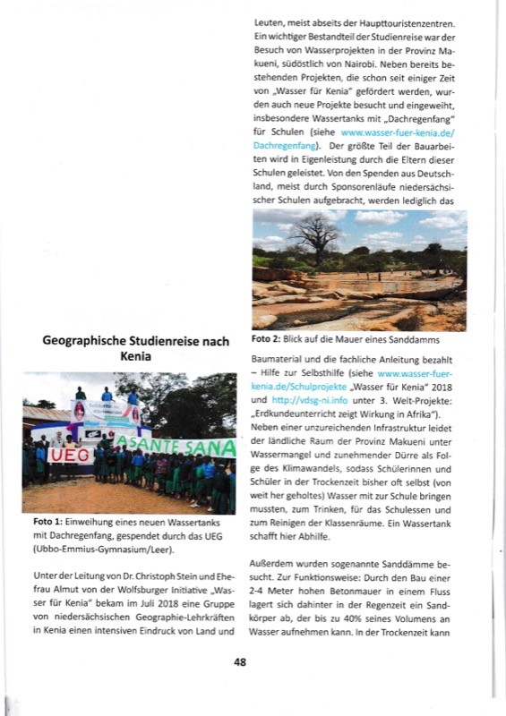 Wir bemühen uns, einmal jährlich – auf eigene Kosten – nach Kenia zu reisen und uns vom Fortschritt der Projekte zu überzeugen. Wenn möglich nehmen wir Lehrer:innen mit, deren Schulen durch Spenden zum Bau eines Wassertanks beigetragen haben.